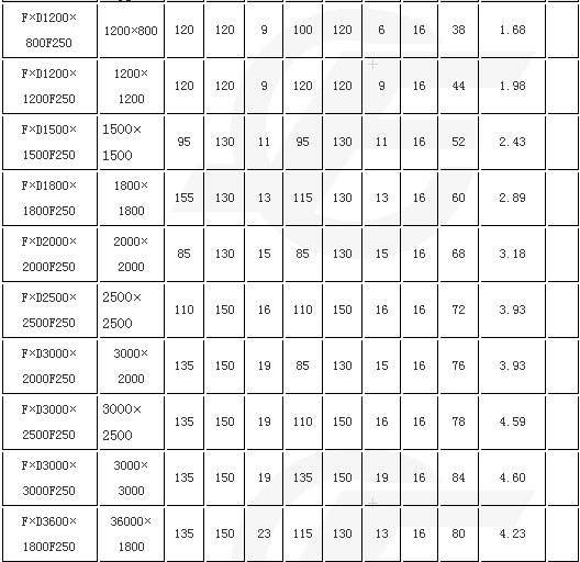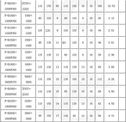 F×D400×200F250 | 400×200 | 40 | 110 | 4 | 50 | 110 | 2 | 12 | 20 | 0.63 |