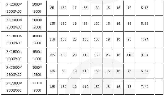 ?。?)FXDA4500×4000F400表示方形非金屬補償器,長期工作≤100°C,內壁為4500×4000mm,法蘭連接產(chǎn)品長度400mm。